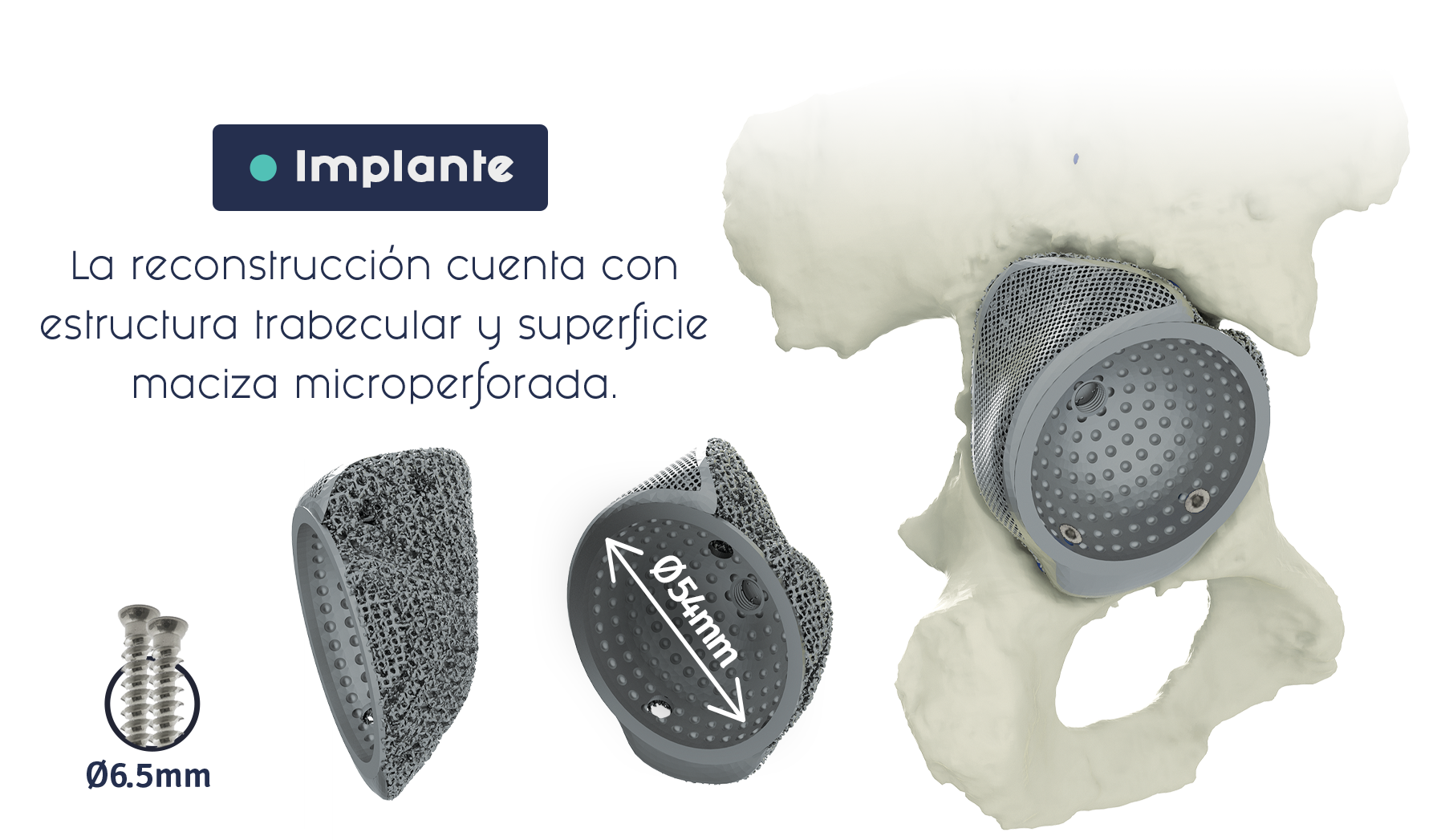 Se planifica resección ósea diafisiaria de 156mm. El implante posee un alma canulada para solidarizarse con un clavo endomedular. Las áreas en contacto con el hueso disponen de pestañas de estructura maciza y trabecular.